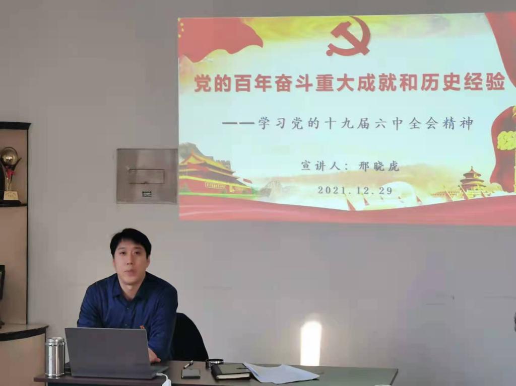 邢书记结合自身学习党的十九届六中全会精神心得体会,以《中共中央关于党的百年奋斗重大成就和历史经验的决议》为题,从深刻认识总结党的成就和经验意义、深刻认识党的百年奋斗的伟大成就、深刻认识党的百年奋斗的历史影响、深刻认识党的百年奋斗的历史经验等四个方面进行了宣讲。