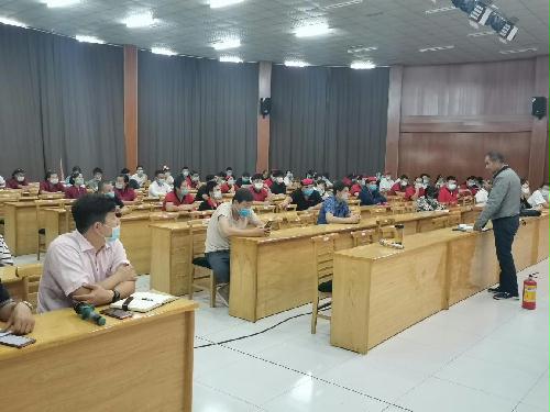 为加强餐厅消防安全管理,提升员工的消防安全意识,进一步普及消防安全知识,切实做好疫情防控常态化条件下的餐饮消防安全工作,9月24日下午,渤海校区组织餐厅工作人员进行消防安全培训并观看了《学校消防安全公开课》直播视频录像。餐饮管理科相关工作人员,餐厅工作人员149人到场参会。渤海校区消防工作负责人王静格副院长、保卫科负责同志、校区消防管理员参加培训会,培训会由餐饮管理科王忠良主持。