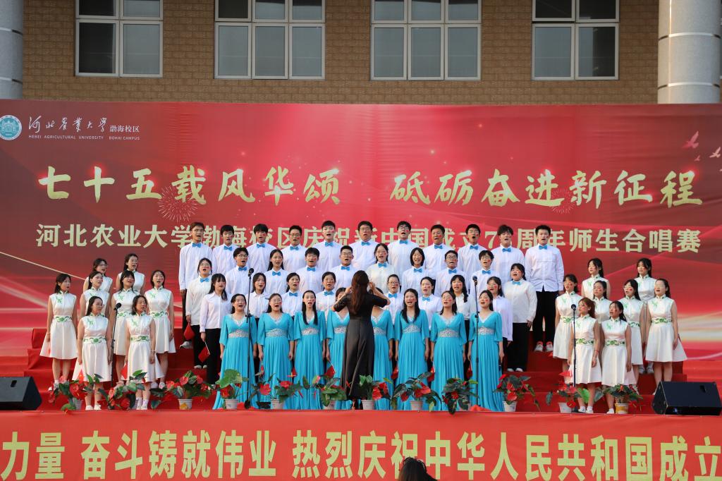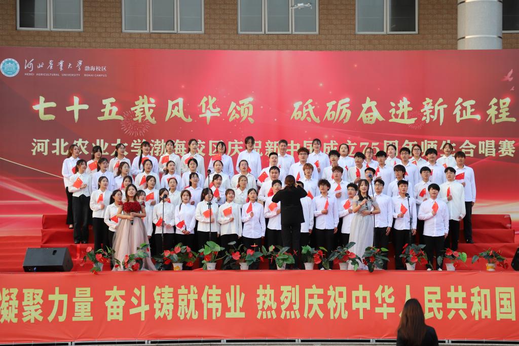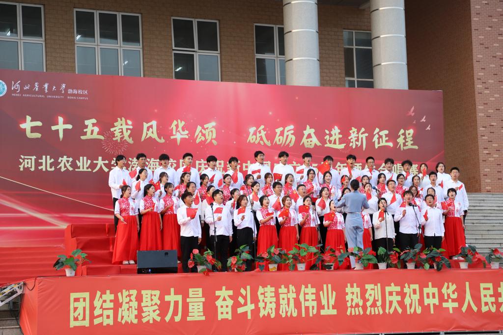 在新中国成立75周年到来之际,进一步引导广大党员干部、教职员工和大学生重温峥嵘岁月、厚植家国情怀,9月27日下午,渤海校区在崇德楼前举办“七十五载风华颂 砥砺奋进新征程”庆祝新中国成立75周年师生合唱赛。