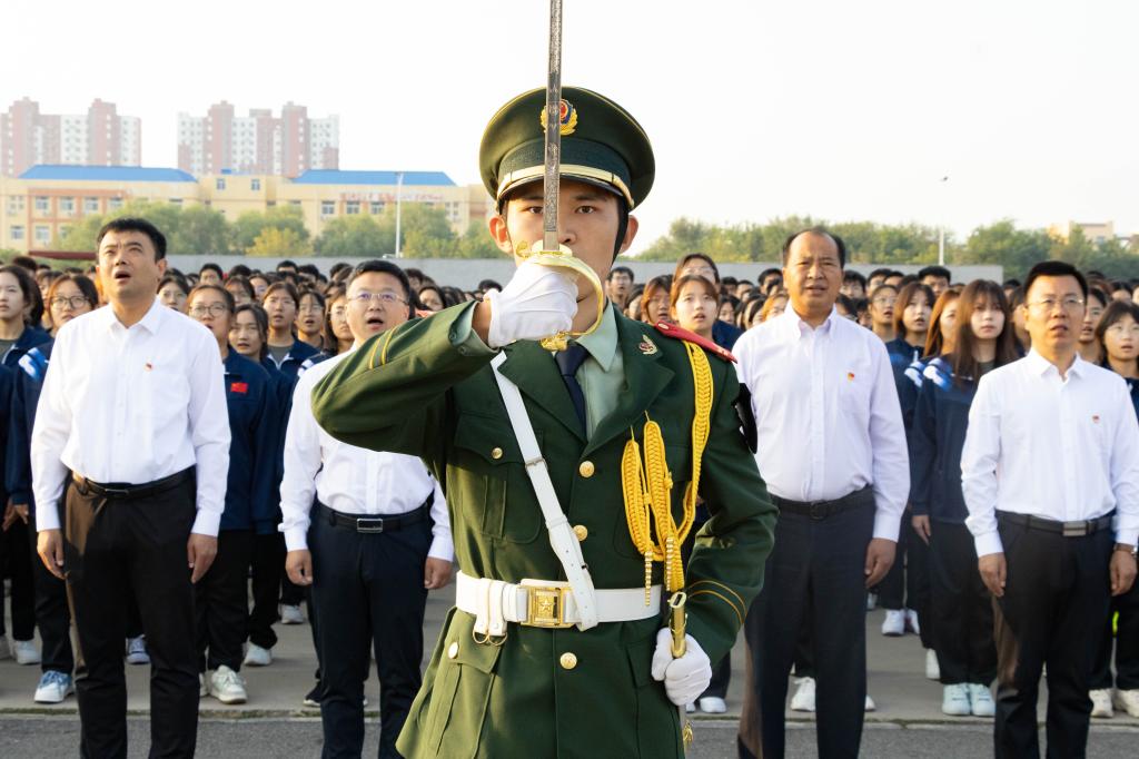 在中华人民共和国成立75周年之际,渤海校区于9月27日隆重举行“向祖国报告 向国旗敬礼”爱国主题升旗仪式。校区各单位负责人、辅导员代表、全体新生,共计1800余人参加仪式。
