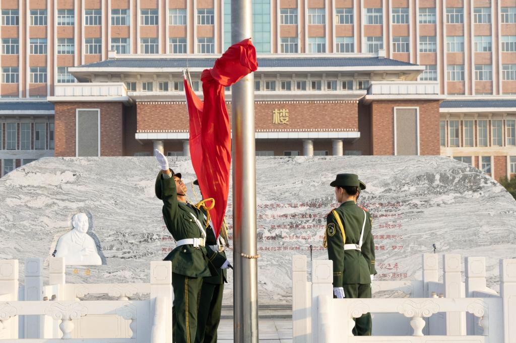国旗下,再出发。校区全体师生将勇担时代使命,锤炼过硬本领,以优异成绩献礼中华人民共和国成立75周年,以实际行动书写为中国式现代化挺膺担当的青春篇章。