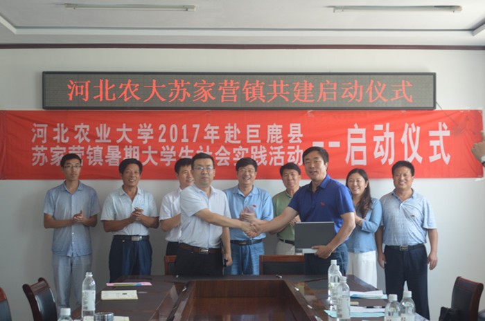 7月11日,我院赴巨鹿县苏家营镇暑期大学生社会实践活动启动仪式在苏家营镇举行。校技术转移中心副主任李保会,校团委副书记时翠平,城乡建设学院党政负责同志,巨鹿县委常委、组织部部长李志辰,苏家营镇相关领导及学院社会实践小分队全体师生共计30余人参加启动仪式。苏家营镇镇长郭立崇主持仪式。 巨鹿县委常委、组织部部长李志辰代表县委、县政府预祝18luck新利手机版iso 城建学院与巨鹿县苏家营镇共建合作成功,并向18luck新利手机版iso 师生的到来表示欢迎和感谢。多日来,农大师生在苏家营镇苏二村顶烈日、冒酷暑,积极开展“四进四信”进课堂、慰问老党员、发放调查问卷、绘制文化墙、实地测量等社会实践活动,得到了当地群众的认可和好评。他表示校地双方要以大学生社会实践活动为契机,依托综合试验站,充分发挥各自优势,通过多种形式逐步扩大合作领域、合作方向,要把党建与技术合作、人才交流、大学生社会实践等紧密结合起来,实现校地合作共赢的目标。随后,苏家营镇领导介绍了该镇经济社会发展整体情况及“支部创业”、“80后人才进班子”等经验做法。 校团委副书记时翠平在讲话中表示,18luck新利手机版iso 师生在暑期社会实践中要发扬埋头苦干、求真务实的工作作风,用我们的实际行动,践行“太行山道路”,弘扬“李保国精神”,把我们掌握的知识转化为生产力,为校地共建贡献自己的力量。 启动仪式上,18luck新利手机版iso 技术转移中心副主任李保会与巨鹿县委常委、组织部部长李志辰共同为“18luck新利手机版iso 综合试验站”揭牌,城乡建设学院与苏家营镇签订了《18luck新利手机版iso 城建学院与巨鹿县苏家营镇共建合作协议》。 仪式结束后,与会双方共同慰问了社会实践团队师生,并向留守儿童捐赠了慰问品。 我院2017年暑期大学生社会实践赴巨鹿师生共计13人,将在巨鹿县苏家营镇苏二村进行为期15天的社会实践活动,内容涉及美丽新农村建设、农业种植结构调整、观光农业调研等方面。