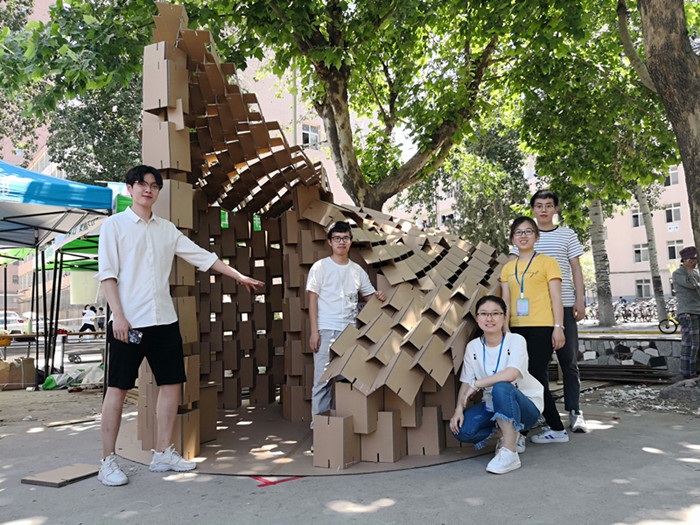 本次大赛由石家庄铁道大学、河北省土木建筑学会建筑师分会、河北省高等学校土建类教学指导委员会主办,以“移动街区”为主题,要求在规定时间和规定范围内自主建构临时性、物质性的空间,每栋纸板建筑必须面向街道有明确的开口,形成有组织、具有“公共”、“私密”的空间关系。参加者以瓦楞纸为主要材料,并辅以其他材料,收集相关的资料,对材料实体进行性能实验,从材料的切割、交接手法、组合样式、叠加的层次等方面入手,运用建筑结构力学和建筑构造的一般原理,形成特点鲜明且能够表达主题的空间形式。