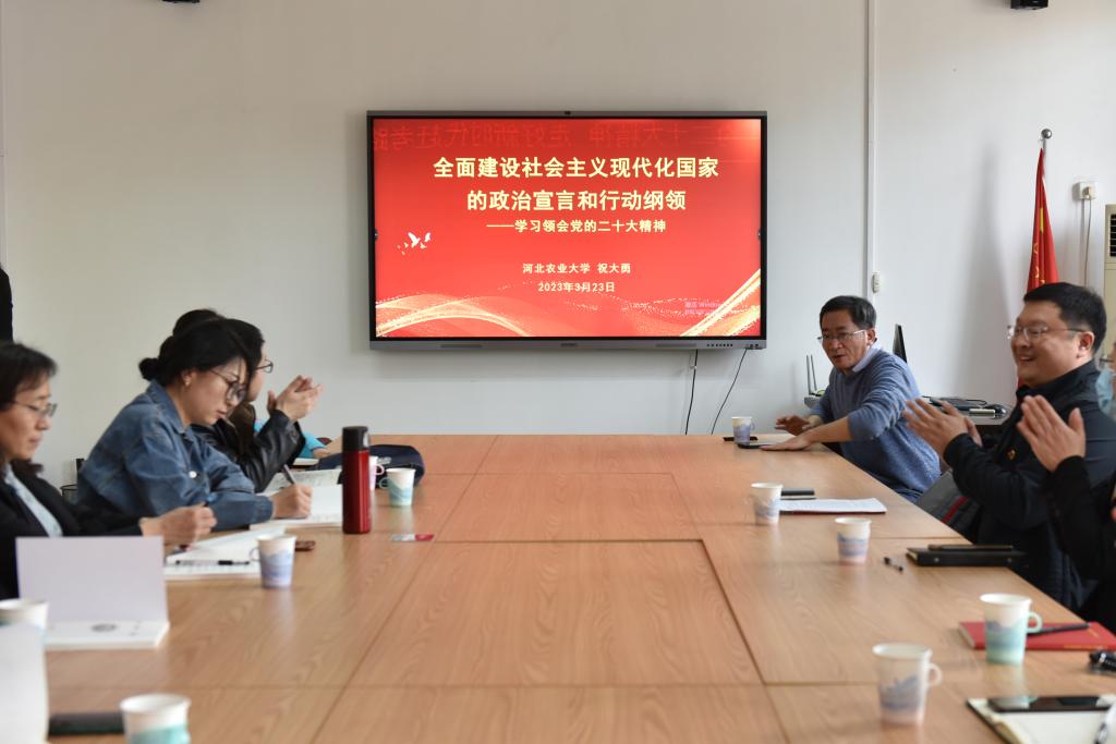 3月23日下午,城乡建设学院教工支部在二楼会议室开展党的“3·23 赶考日”系列活动之党的二十大精神宣讲报告,邀请我校马克思主义学院祝大勇副院长作专题报告。报告会由学院副院长赵斌主持,管理支部、市政系支部及部分学生党员代表共计20余人参会。