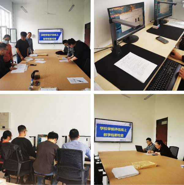 4月25日下午,城乡建设学院在学院评估(认证)工作室全面展开审核评估线上教学档案检查工作,学院主要负责领导、各系负责人、教务办及相关教师十余人参加检查工作。