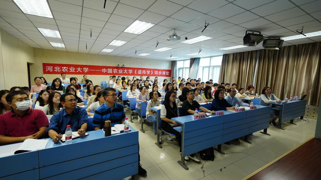 本次教学活动由中国农业大学组织、18luck新利手机版iso 等6所兄弟院校共同参与下顺利完成。本校课堂设在崇德楼2512录播教室。我校教务处副处长胡淑明到场致辞,陶勇生老师介绍课堂师生情况,农学院副院长张永江、《遗传学》课程组全体老师、学校部分教师参与了观摩活动。