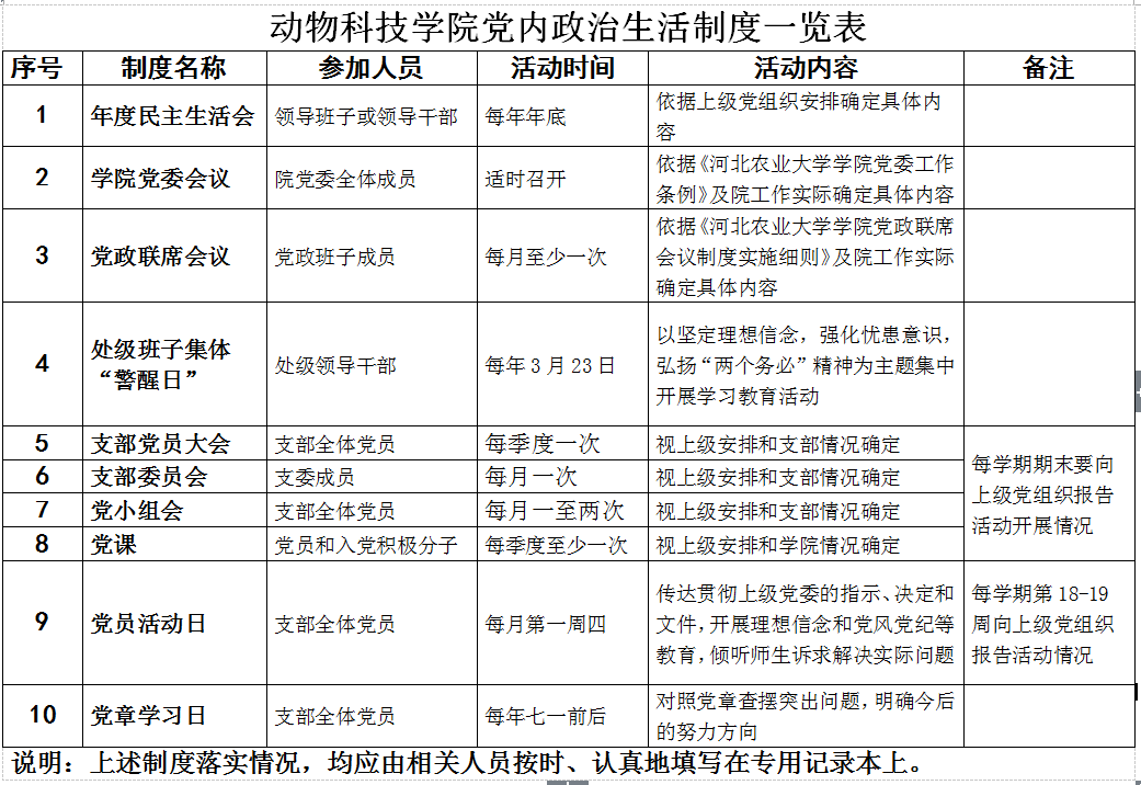 动物科技学院党内政治生活制度一览表