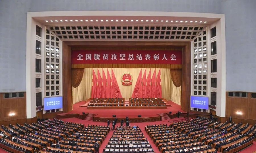 2月25日上午,全国脱贫攻坚总结表彰大会在北京人民大会堂隆重举行。中共中央总书记、国家主席、中央军委主席习近平向全国脱贫攻坚楷模荣誉称号获得者颁奖并发表重要讲话,并对全国脱贫攻坚先进个人、先进集体进行表彰。