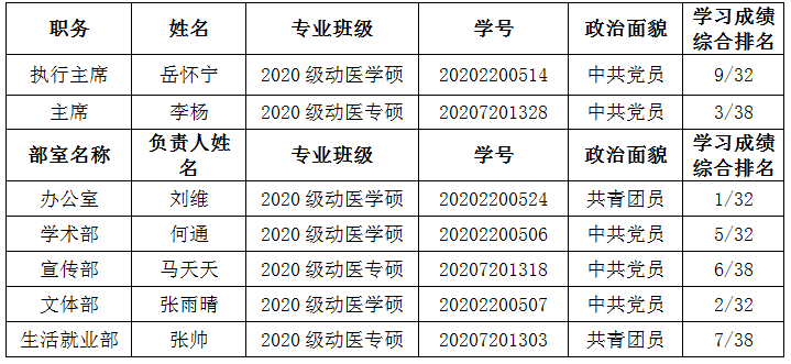 2021—2022学年18luck新利手机版iso 动物医学院/中兽医学院研究生会备案表