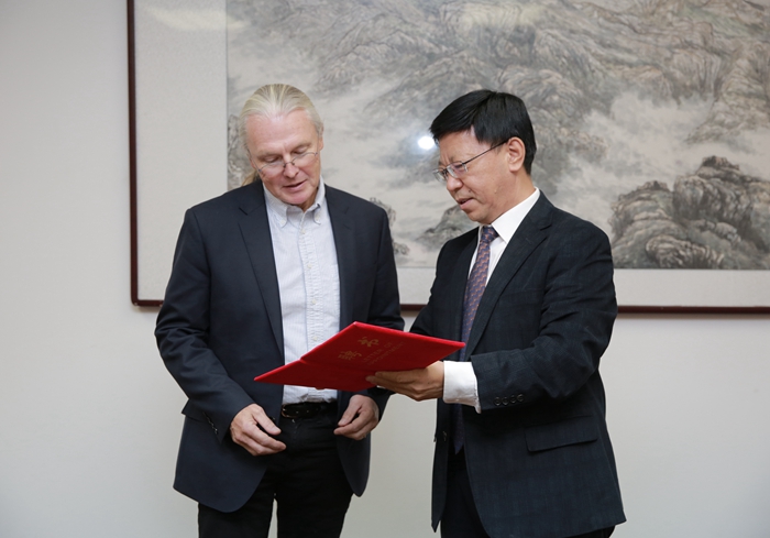 On October 25, Prof. C Robertson McClung from the Department of Biological Sciences, Dartmouth College, USA, visited HEBAU and delivered an academic report on“the study of the endogenous body clock of brassica crops”. Prof. Shen Shuxing, President of HEBAU, warmly received him and awarded him the certificate of Distinguished Professor of Hebei Agricultural University. Shen Shuxing highly appreciated Prof. McClung's great achievements in the research of the regulation mechanism of endogenous biological clock in plants, and also briefly introduced HEBAU advanced the development of regional agriculture by utilizing the advantages of educational and scientific resources. The two sides looked forward to the future prospects of cooperation and reached the intention of cooperation in jointly training doctoral students and undertaking scientific research programs. After the meeting, Prof. McClung had a discussion with the vegetable genetics and breeding team from the College of Horticulture, HEBAU, and put forward some suggestions and cooperative ideas on the research of the regulation mechanism of endogenous biological clock of vegetable crops.
