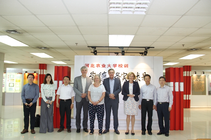 On May 16th, a delegation of 6 people led by Ms. Adri Bom-Lemstra, Vice Governor of South Holland from the provincial government of South Holland and the Inholland University of Applied Science, Holland visited HEBAU. The delegation including Wiebe Brandsma, the Minister of Economic and Social Affairs of the Province of South Holland; Fokje Lamboo, senior policy adviser of the Bureau of International Affairs, European Union; Qin Zixiao, project manager of the Project of Business Promotion between China and Holland; Gerard Van Oosten, Dean of the College of Agronomy, Food and Life, the Inholland University of Applied Science and Prof. Huang Caicheng, the Inholland University of Applied Science. Prof. Gao Baojia, the former Vice President of HEBAU, met with the delegation and accompanied them to visit the Historic Museum of HEBAU. The two sides also held detailed talks on the operation of the Sino-Holland dual-degree program.