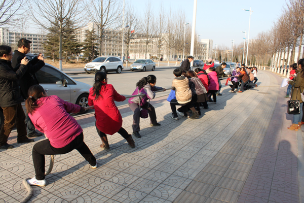 阳春三月,万物复苏,到处洋溢着浓浓的春意。3月6日下午,食品科技学院工会在D座楼前的小广场组织开展了庆祝“三八”国际劳动妇女节活动,目的是让食品院全体女教职员工过一个健康、和谐、快乐、温馨、难忘而有意义的节日,放松身心,促进了解与交流,增强教职工队伍的凝聚力。全院女职工积极参与,进行了适合女职工特点的拔河、跳绳、踢毽子等比赛。学院领导和部分男教工到场加油助威。