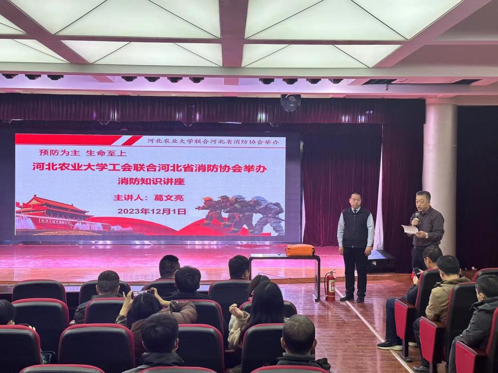 为了深刻吸取近期重大火灾事故的的沉痛教训,围绕119“预防为主,生命至上”的主题,全面落实全省安全生产和消防安全视频会议精神,切实保障广大职工的生命安全,提高全员消防安全意识和技能,12月1日,校工会特邀河北省消防协会专职宣传教员葛文亮来我校为教职工做消防安全知识讲座。