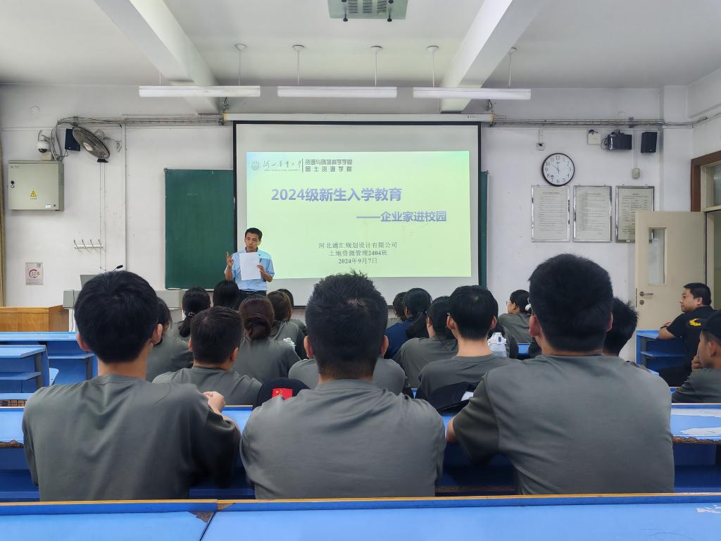 9月7日,学院在崇德楼2203、2207、2208、2209、2214分别举办新生入学教育——企业家进校园活动。中天圣塬集团、河北陆源机构、博瑞诚方集团、唐山兰德资产评估有限公司、河北通汇规划设计有限公司五家校友企业负责人,24级土地资源管理、土地整治工程专业新生共计160余人参加活动。活动由院长张蓬涛主持。
