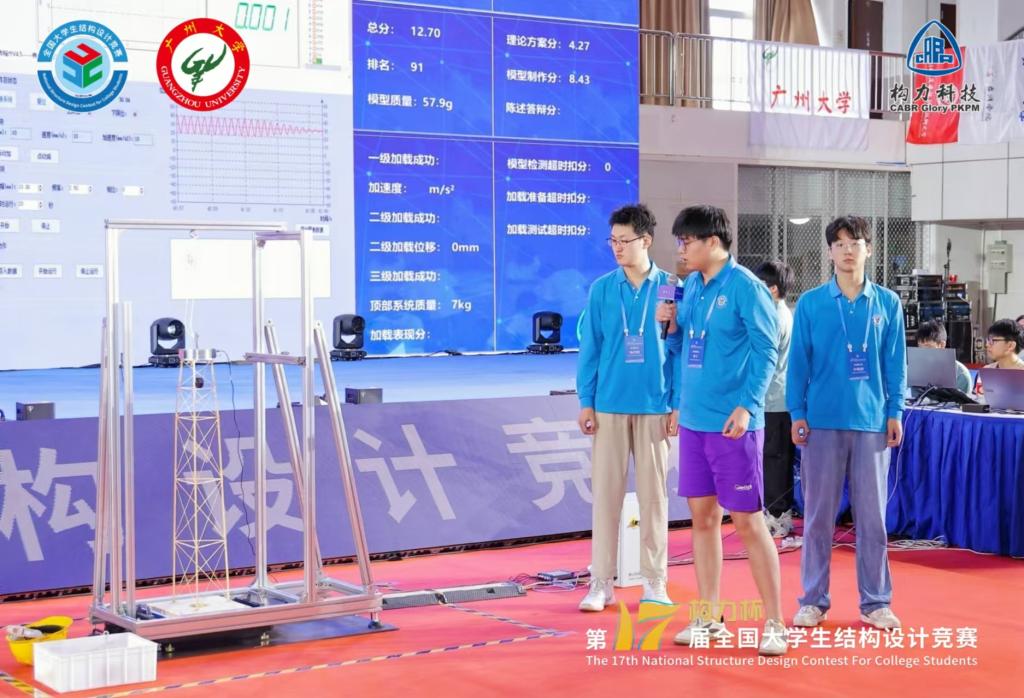 11月6日至10日,由全国大学生结构设计竞赛委员会主办的“构力杯”第十七届全国大学生结构设计竞赛全国总决赛在广州大学举行。本届总决赛队伍在全国31个省(自治区、直辖市)组织分区赛的595所高校、1863支参赛队伍中评选产生,最终有120支代表队在总决赛的现场同台竞技。学院土木工程专业李宁、杨泽煜、申晓赓三名同学组成的“2.5”代表队经过历时3天的现场参数抽取、模型制作、几何检测、陈述答辩、模型加载等环节比拼,喜获全国一等奖,这也是我院连续两届在该项赛事获得全国一等奖。