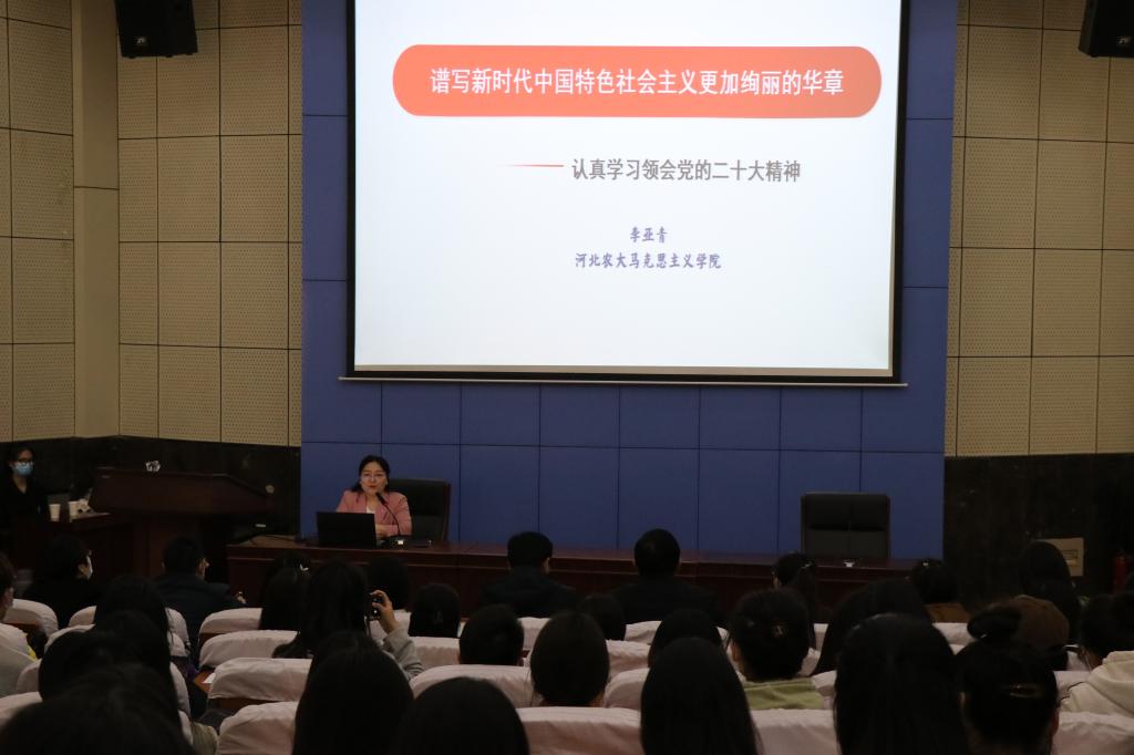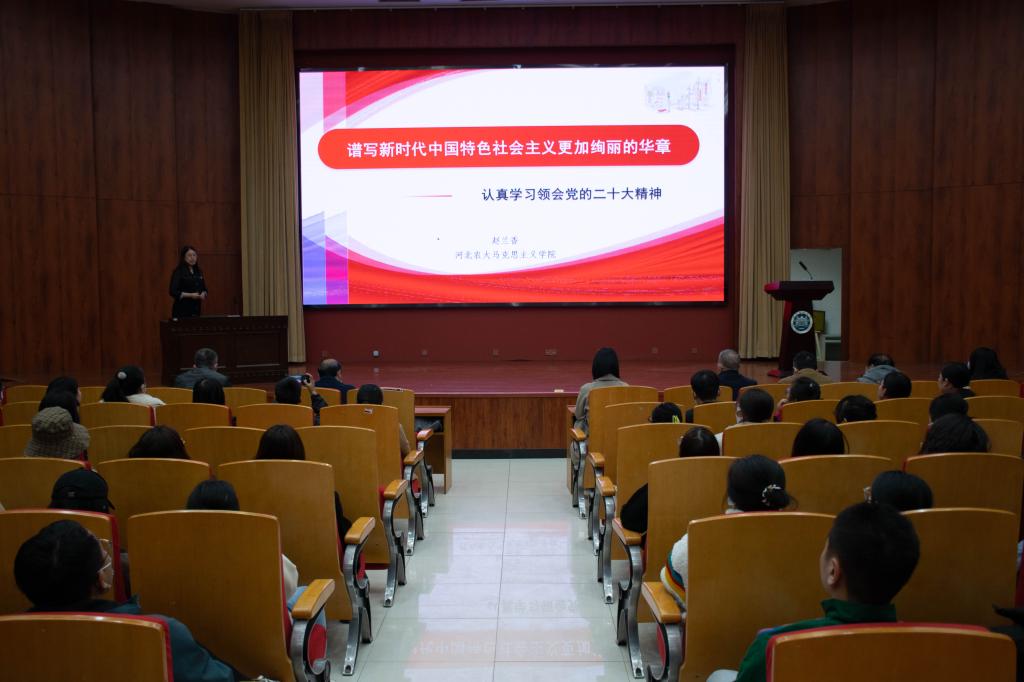 为全面深入学习领会党的二十大精神,扎实推进学习宣传贯彻工作,持续兴起全校学习宣传贯彻党的二十大精神热潮,学校选拔了一批政治素质好、理论水平高、宣讲能力强的思想政治理论课教师组成“党的二十大精神宣讲团”,下发了《关于开展党的二十大精神宣讲的通知》,以线下为主的方式,深入各基层党组织开展专题宣讲,推动党的创新理论在基层不断走深走实。