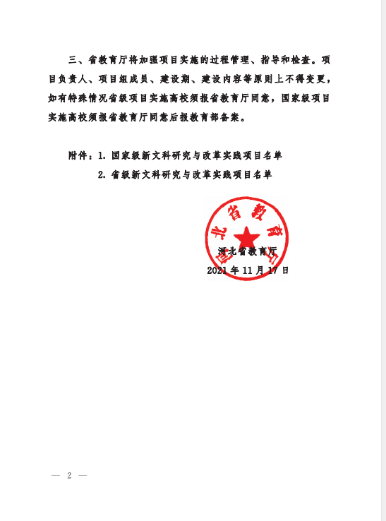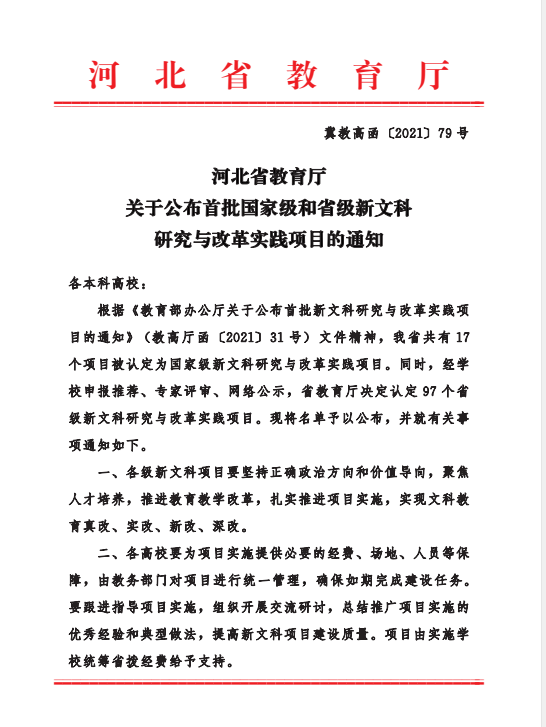 附件下载:河北省教育厅 关于公布首批国家级和省级新文科 研究与改革实践项目的通知.pdf