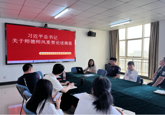 卢庆娇同志带领大家学习了《习近平总书记关于师德师风重要论述摘篇》和《新时代高校教师职业行为十项准则》等重要资料,李永超同志结合警示教育案例,让教师们深刻认识到师德师风在教育事业中的重要地位和作用。