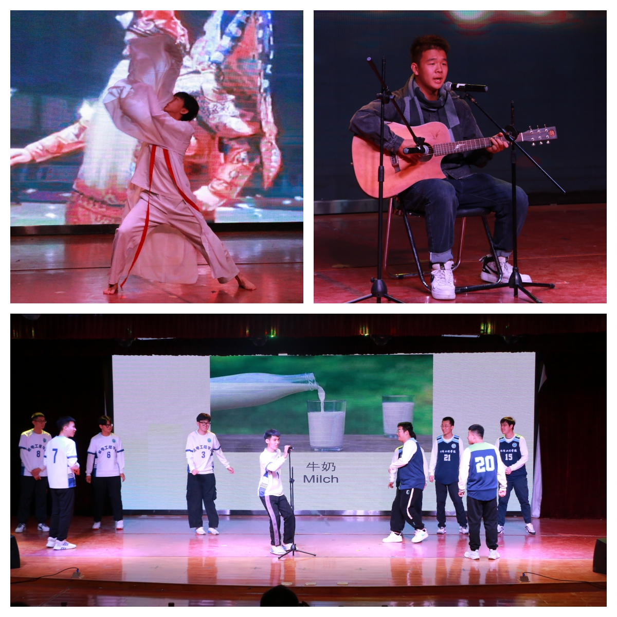 11月10日,在逸夫楼音乐厅举行中德文化交流会,200余名中德合作办学学生参加了活动。交流会上,汉语德语节目交替演出,形式多样,精彩纷呈。德语歌曲、德语朗诵、德语情景剧、德语猜谜等节目,让德国嘉宾见证了中德班同学扎实的德语基础和多才多艺的综合能力。在茶艺文化环节中,茶艺表演者以缠绵起伏、行云流水的动作,完美展现了中国茶艺的精湛技艺,让德国嘉宾亲身体验到了中国茶文化的独特魅力。在包饺子互动环节,机电工程学院党委书记郭洪生亲自为德国嘉宾示范,既让嘉宾体验了中国传统美食包饺子的过程,又加深了对中国饮食文化的了解,增进了中德之间的友谊。