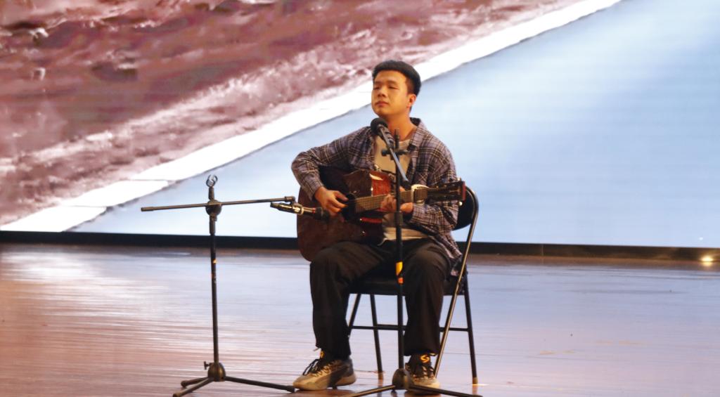 本次晚会分为“初见•梦想起航”、“逐梦•青春律动”、“同行•芳华绽放”三个篇章。开场舞《啦啦操》表演为晚会拉开序幕。《兰亭序》乐器表演不仅展现了同学们的音乐技艺,更体现了对传统文化的热爱和传承;武术队《少年强,中国强》手持刀枪剑等各式兵器,在舞台上腾跃翻滚、闪转腾挪,动作流畅有力,气势恢宏;中德双语歌曲《平凡之路》鼓励每一个不甘平凡的同学执四年青春之笔,用坚持与努力绘出山和大海;2006级优秀校友侯印泽为师弟师妹讲述着自己的大学岁月和奋斗故事;小品《反诈风云》在给同学们带来欢乐的同时,也通过场景演绎提高了同学们的反诈意识,提醒同学们网络诈骗不难防,不贪不给不上当;维他命海乐队的表演,鼓点激昂,歌声悠扬,彰显了机电学子的蓬勃活力。最后,晚会在《我爱你中国》深情的歌词和动人的旋律中圆满落幕。