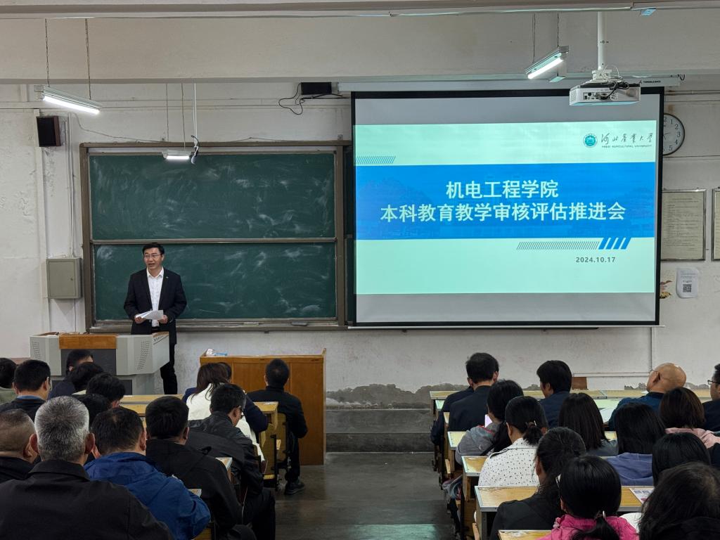 10月17日下午,机电工程学院在二教104教室召开本科教育教学审核评估推进会,学院领导班子成员及全体教师参加会议。