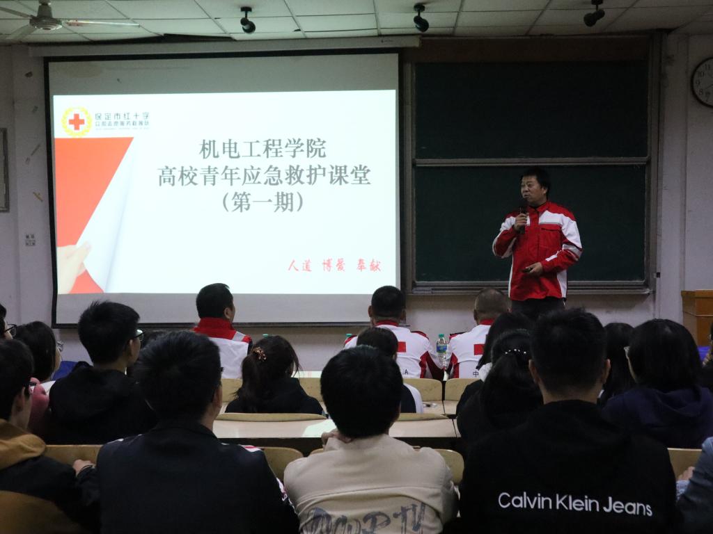 10月19日,机电工程学院在一教101教室举办了第一期“应急救护进校园”培训班。本期培训班共4次培训,由保定市红十字会指导,保定市红十字众和救援队讲师担任主讲,学院51名学生参加培训。