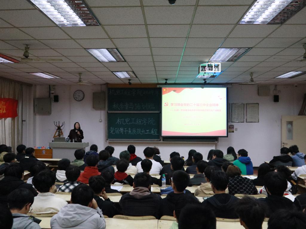 为深入贯彻学习党的二十届三中全会精神,准确理解和把握其丰富内涵、核心要义和原则要求,机电工程学院于11月7日在学校第一教学楼举办了党的二十届三中全会精神专题学习会暨青马工程培训。马克思主义学院青年教师张宗兰受邀做报告,学院辅导员、学生党员、学生干部和青年学生代表共计120人参加培训。