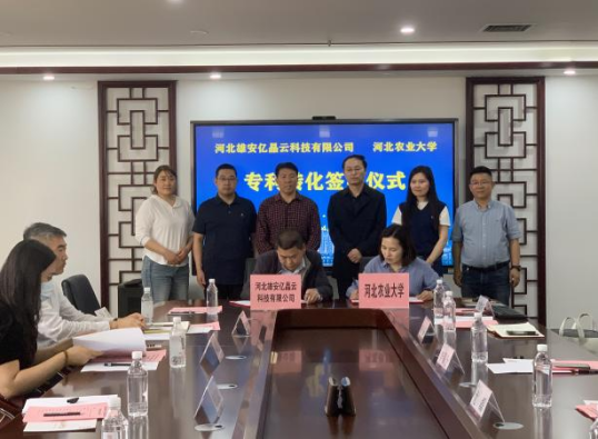 我校机电工程学院袁洪波团队的发明专利《一种设施环境监测传感器部署优化方法》和实验实训中心刘艳萌团队的发明专利《一种实验室废弃物处理系统》成功转让给河北雄安亿晶云科技有限公司,双方举行了签约仪式。