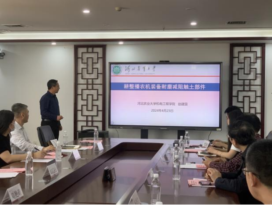 在项目路演期间,我校机电工程学院赵建国、袁洪波、温鹏和王鹏飞等4名教师分别就《耕整播农机装备耐磨减阻触土部件》、《动植物生物信息感知与农业环境监测及调控技术》、《一种配电终端优化配置方法及系统》、《配电网动态孤岛划分方法及终端设备》和《果园机械化生产关键技术与装备》的技术作展示路演。