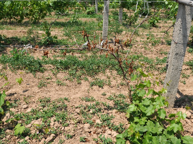 1-4.葡萄受白纹羽病为害较重时,导致地上部枝蔓整体枯死