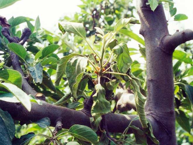 1-13.苹果根朽病病树之发芽迟、开花晚