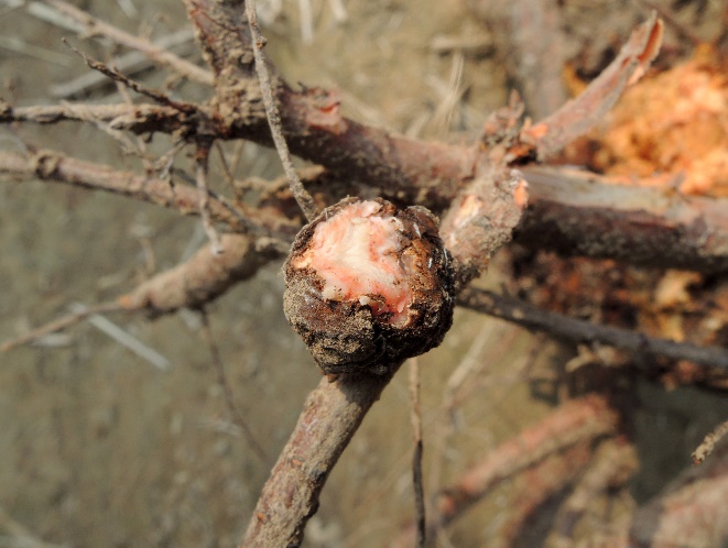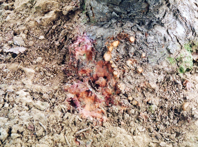 1-7.果树紫纹羽病之病树主干基部周围的紫色菌膜