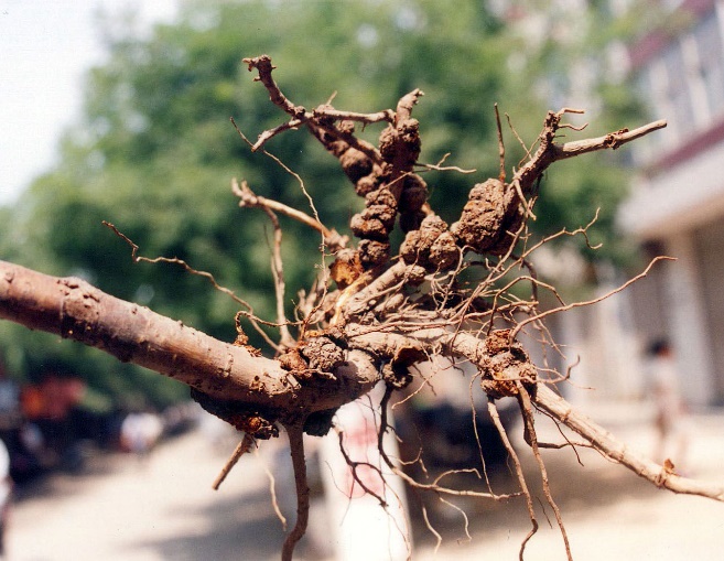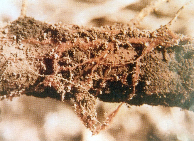 1-6.果树紫纹羽病之病根表面的紫色菌索