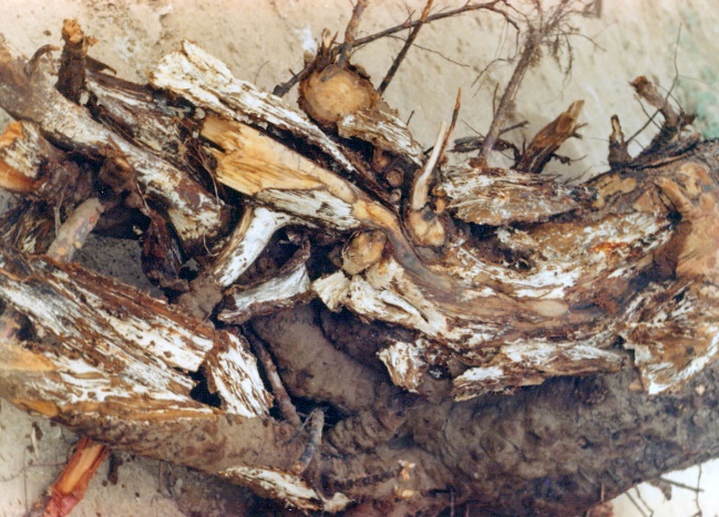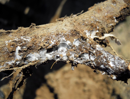 1-1.果树白纹羽病之病根表面的白色菌丝膜