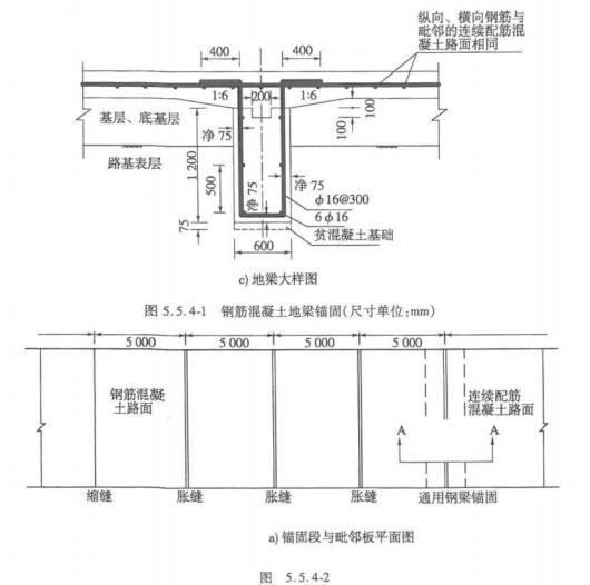 6.3.5相邻车道之间或车道与硬路肩之间的纵向接缝内,必须设置拉杆。该拉杆可用加长的横向钢筋代替。