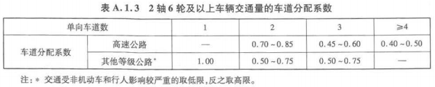A. 1. 3可依据设计公路的车道数,按表A.确定轮及以上车辆交通量的车道分配系数