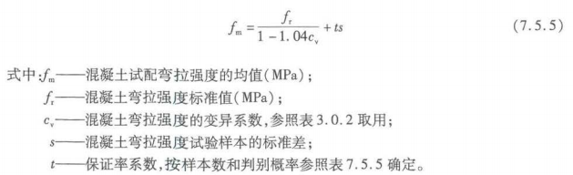 7.5.5混凝土配合比设计时的混合料试配弯拉强度的均值,应按式(7.5.5)确定。