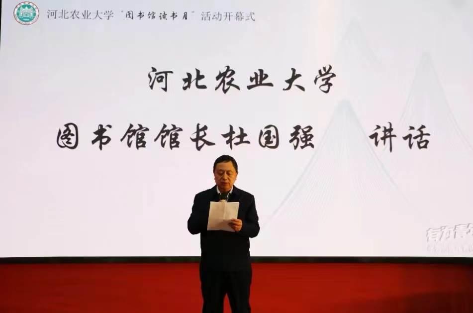 杜国强致辞,他首先对出席活动的各位领导和师生读者表示热烈欢迎,对多年来支持和帮助图书馆发展的相关单位和领导、对此次文艺汇演的全体工作人员表示诚挚的感谢。然后鼓励广大师生读者,围绕2024年读书月活动主题广泛阅读,享受阅读之乐,从书中感受生活的真、心灵的美和人性的善。最后预祝此次文艺汇演圆满成功。