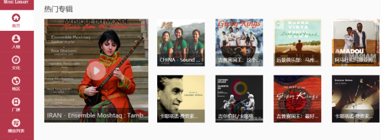 提供种类丰富的世界音乐,包含从传奇历史音乐表演到当代世界音乐的内容,音乐资源来自150多个国家、超过1,500个文化群体,共汇聚了32,000位艺术家的唱片和近万张专辑(101,000首音频),新专辑持续更新。