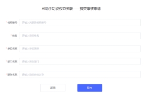 输入机构账号hbnydxAI及个人信息提交申请,管理员审核通过后实现关联。