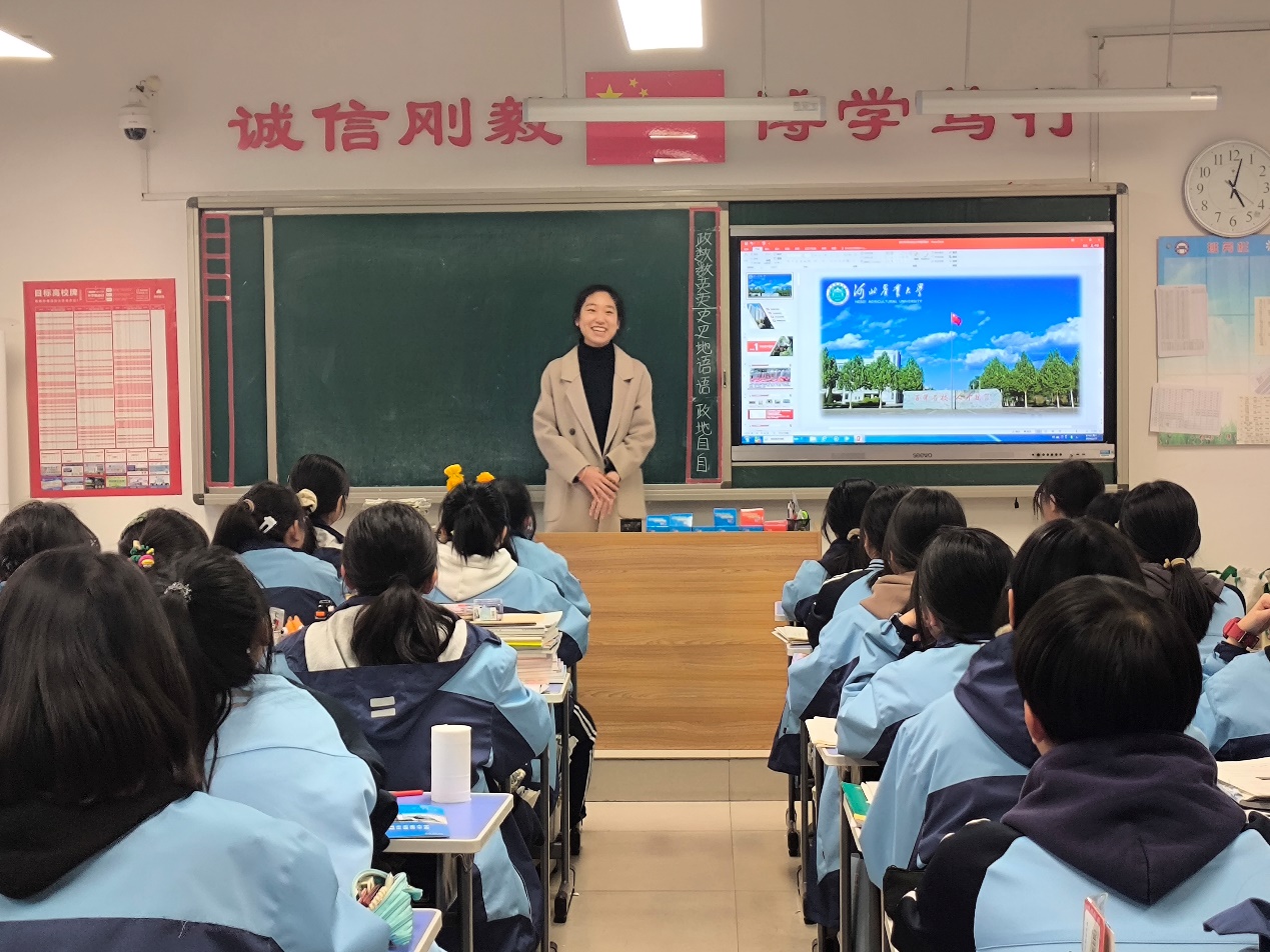 寒假期间,侯明昕、魏钇汐、李欣怡等24名推免生同学前往河北省石家庄市、保定市、唐山市等地的高中开展了“高中母校行”宣讲活动。他们采取了班级宣讲、线上宣讲、线下走访宣讲等形式,从学校基本情况、本科教育特色、学习生活环境、录取情况分析等方面全方位介绍了我校概况、学科专业设置、本科招生情况等,助力学弟学妹合理选择报考专业,提前做好生涯规划。此外,他们还分享了自身在校学习情况以及获得推免资格的奋斗历程,将一路走来的心得体会在线重演,以此来激励学弟学妹奋发向上、砥砺前行。