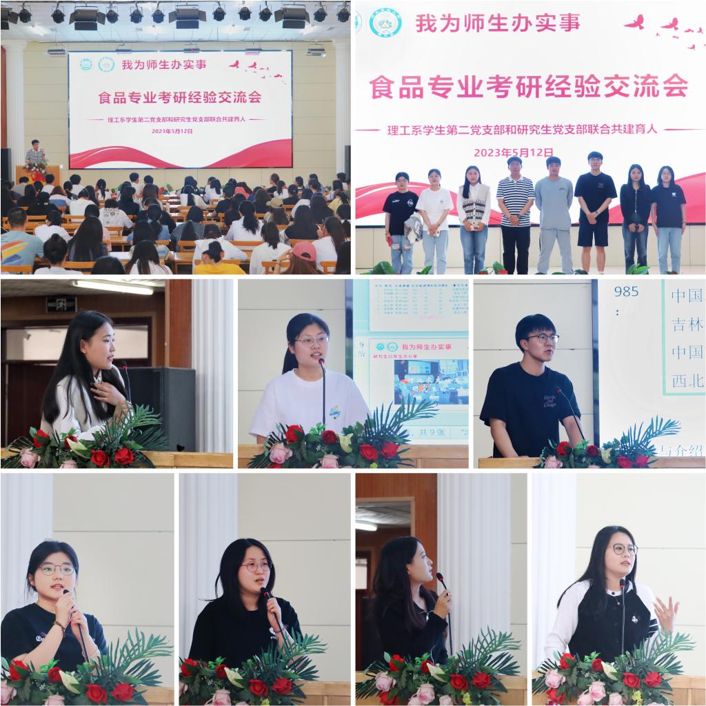 为深入学习贯彻习近平新时代中国特色社会主义思想主题教育,践行为师生办实事宗旨,理工系学生第二党支部和研究生党支部联合共建育人,在大学生活动中心举办了食品专业考研经验交流会,旨在帮助广大同学深入了解考研准备工作。会议邀请了刘昕恬、李晓珊、王一竹、张帅佳、郝江婷、陈炳桥六名同学分享学习经验,研究生党支部尚丹红同学分享研究生日常生活,2021级食品专业全体同学、2020级考研意向同学共计350余人参加。