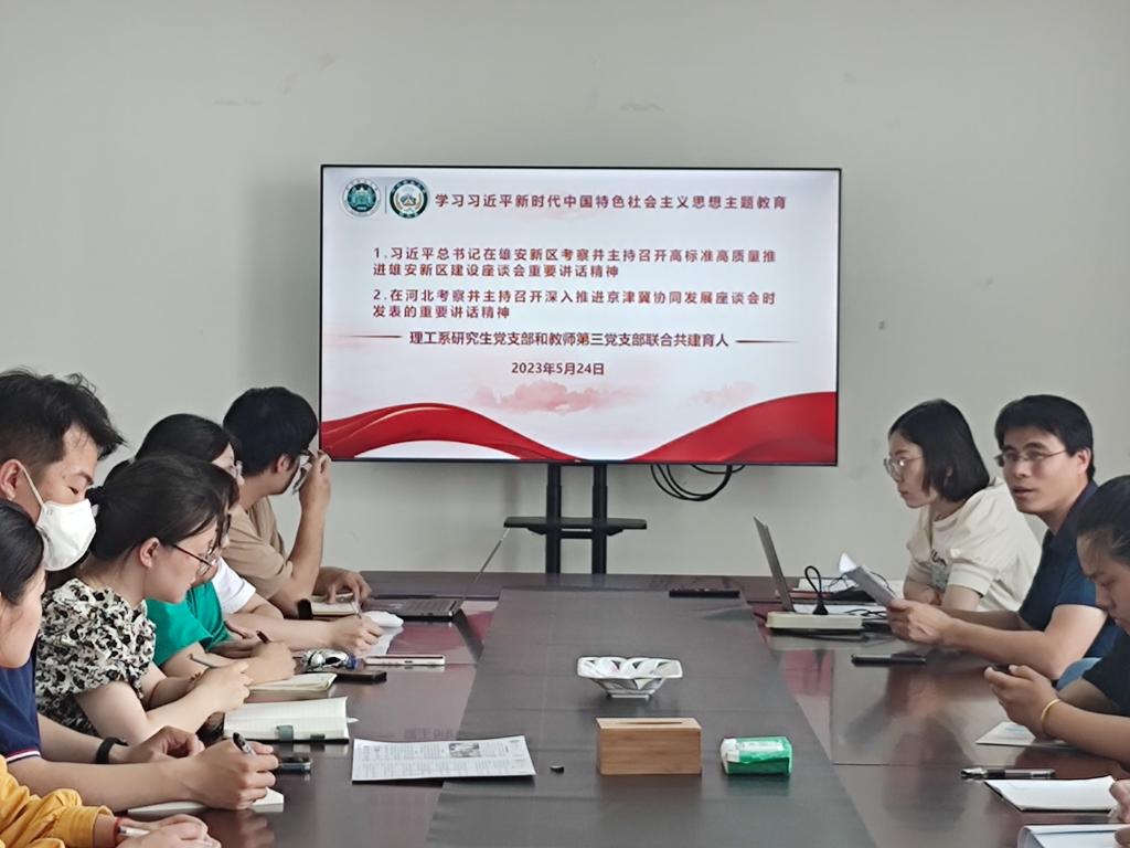 5月24日,理工系研究生党支部和教师第三党支部在崇德楼0608召开支部理论共建活动,深入学习贯彻习近平总书记在河北考察重要讲话精神。