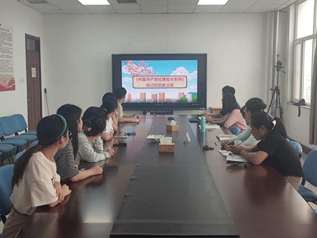 研究生党支部书记胡珊珊带领大家一起学习了《中国共产党纪律处分条例》(以下简称《条例》)的发展变革,让大家了解了《条例》修订的历史背景、主要内容和鲜明特点,引导大家学纪、知纪、明纪、守纪。教师党支部书记张青峰结合教师和研究生学术科研特点,带大家共同观看了学术不端警示教育宣传片,让大家了解了什么是学术不端行为,警示大家在日常学习工作中要加强科研诚信和学风建设,营造良好的学术风态。