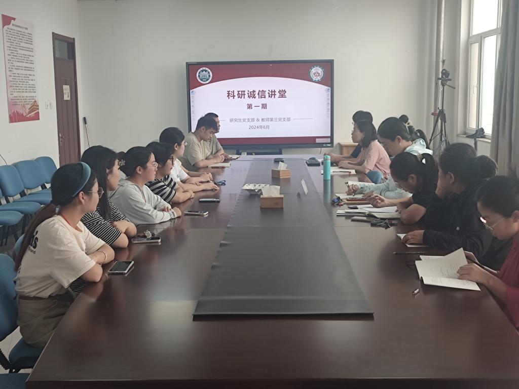 理工系研究生党支部和教师第三党支部为师生共建支部,双方认真贯彻落实党总支党纪学习教育相关要求,同时,结合共建要求“导师引领,科研育人”,积极开展系列活动,本次学习中的“科研诚信讲堂(第一期)”也是共建方案的重要活动举措,旨在引导广大师生将遵规守纪印在心,内化为开展学术科研的不变的言行准则。
