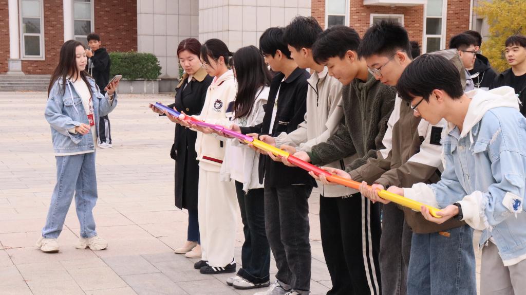 活动以户外素质拓展的形式展开,根据人数分成5个小分队。各个小分队共商团队口号,制定团队标志,将团队目标与精神相契合,为提升团队整体战斗力和凝聚力奠定基础。在接下来的“车轮滚滚向前进”“接续奋斗争先进”“默契配合夺胜利”“争分夺秒总动员”四个活动互动环节中,各分队成员齐心协力、共商计策,既展现了优秀的团队协作意识,也提升了积极思考、勇于践行的能力,加强了团队成员之间的信任感与责任感。黄园在活动总结时指出,此次活动成功的开展,得益于学院的支持、学生干部的付出、全体成员的配合,是丰富支部活动内容、创新主题党日形式的重要探索,也是对团队精神的一次重要历练,希望能够以此活动为契机,感悟团队的力量、领悟青春的担当,用实际行动为学院、学校的高质量发展做出最大贡献。