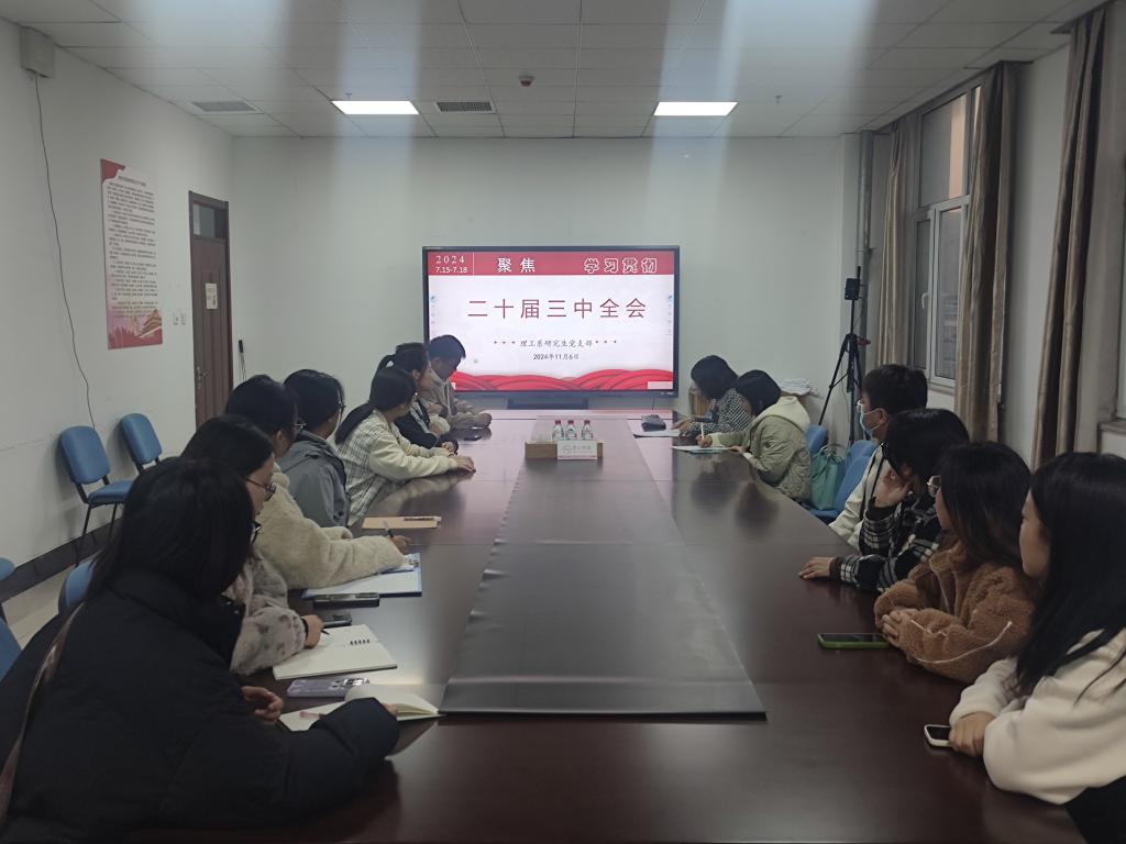 11月6日,理工系研究生党支部开展主题党日活动,深入学习贯彻党的二十届三中全会精神,进一步统一思想、凝心聚力。会议由支部书记胡珊珊主持,全体党员参加学习。