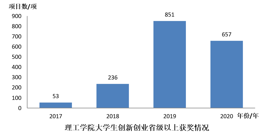 理工学院坚持将创新创业教育融入人才培养全过程,鼓励同学们积极参与创新创业实践,近年来共获得省级及以上大学生创新创业奖励1800余项,其中在各类国家级竞赛中获一等奖18项,二等奖38项,三等奖188项。创新创业竞赛获奖数量排名18luck新利手机版iso 所有学院第一名。坚持师生科研协同,每年都有学生在核心期刊发表论文,近年来本科生以第一作者身份在省级及以上期刊发表论文180余篇,其中核心期刊论文50余篇。