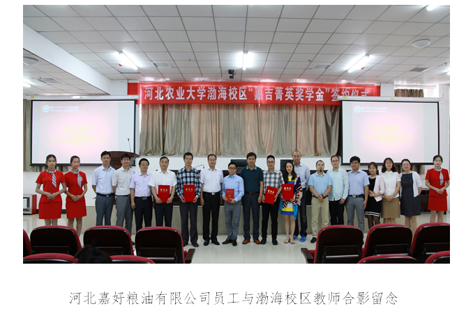 渤海校区综合楼五楼报告厅举行。仪式上,河北嘉好粮油有限公司总经理唐伟先生分别与理工学院院长张伟教授、文管学院副院长刘万才教授签署了捐赠协议。河北嘉好粮油有限公司运营负责人易国阳先生、人力资源经理李晓荣女士等相关负责同志,和渤海校区管委会、学工办、理工学院、文管学院相关同志及部分学生代表共同见证了这一具有意义的时刻。仪式由文管学院副院长岳华同志主持。