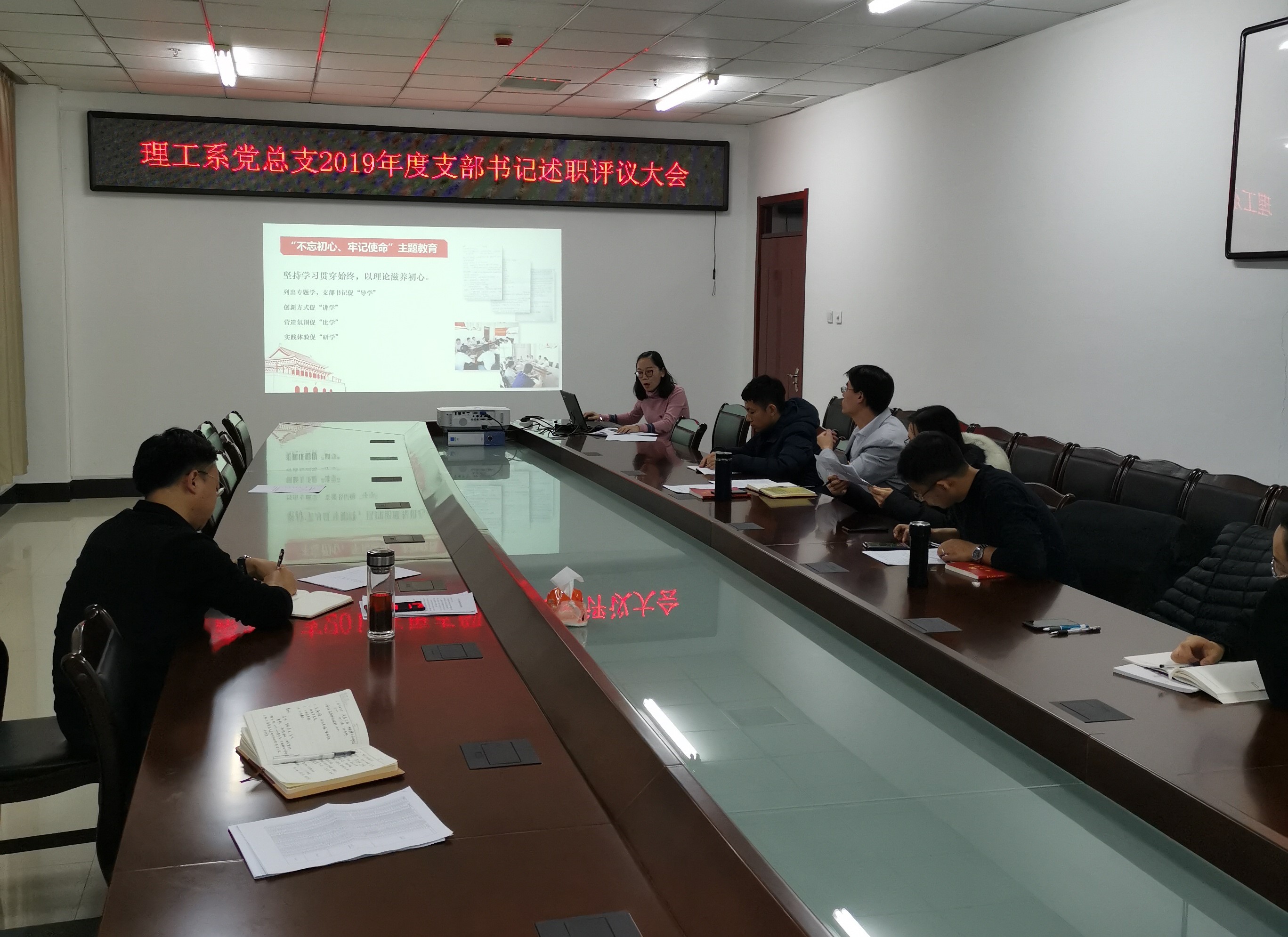 为切实加强党支部建设,落实立德树人根本任务,推进党支部建设的制度化、规范化、科学化,充分发挥党支部战斗堡垒作用和支部书记的模范带头作用,1月3日,理工系党总支在崇德楼0916会议室召开2019年度支部书记述职评议大会,党总支书记王伟及各支部委员出席会议。